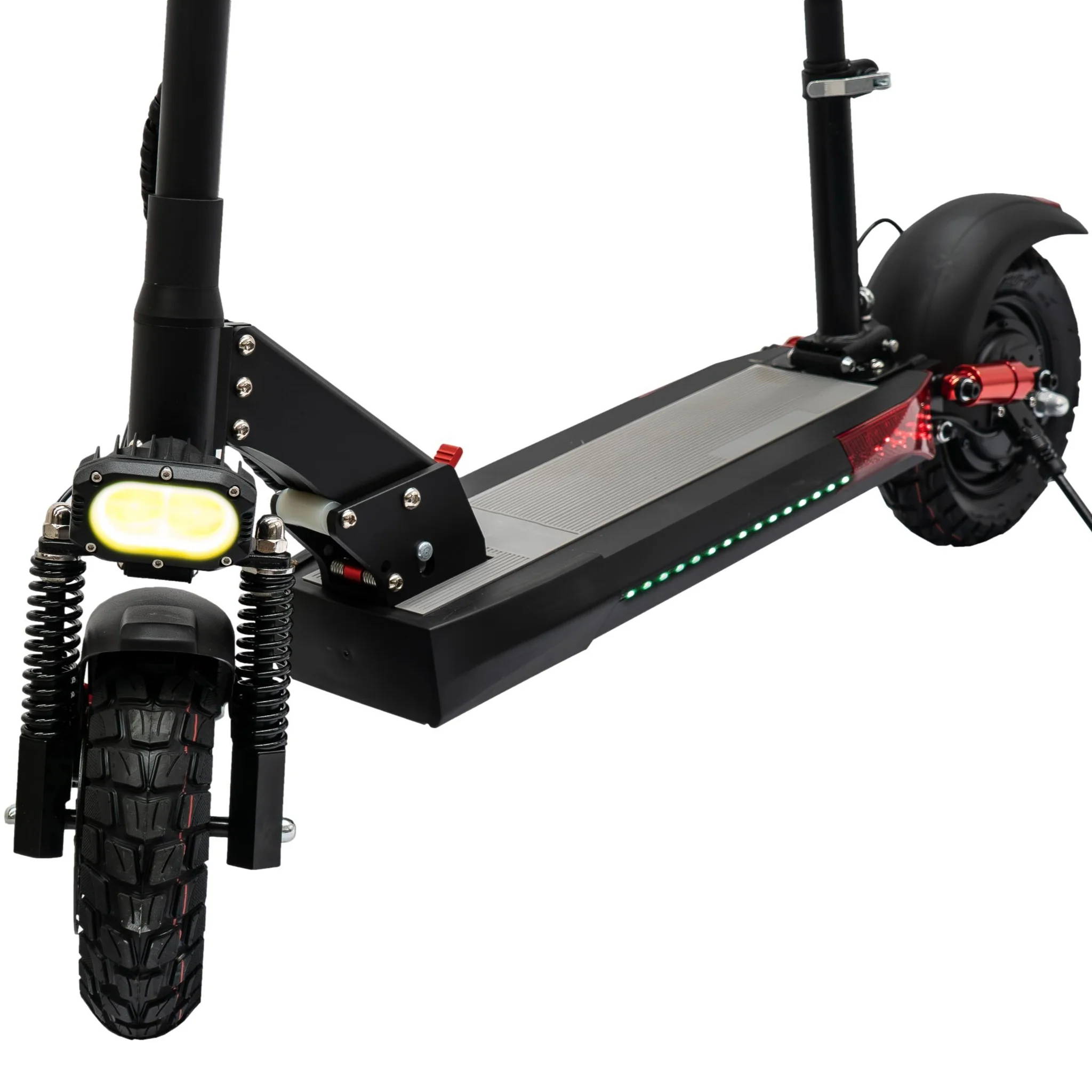 Equipado con freno de disco en la llanta trasera, luz LED delantera y luz de freno trasera, el Scooter Urbano 2.0 prioriza tu seguridad en cada viaje.